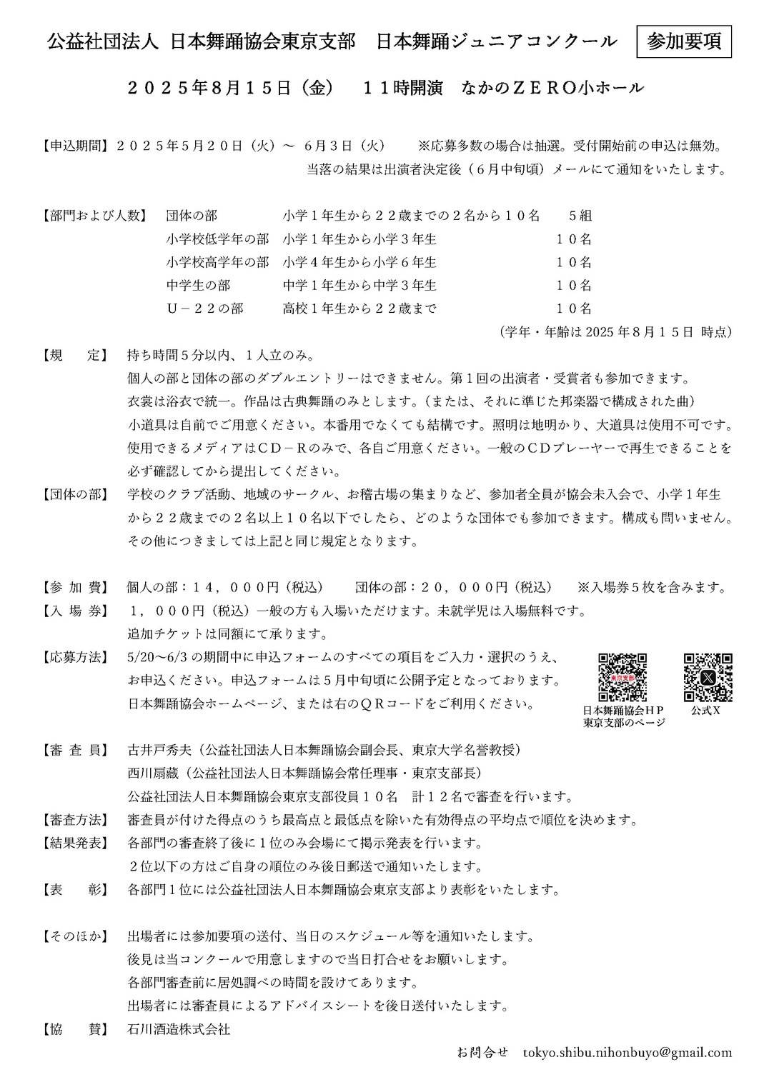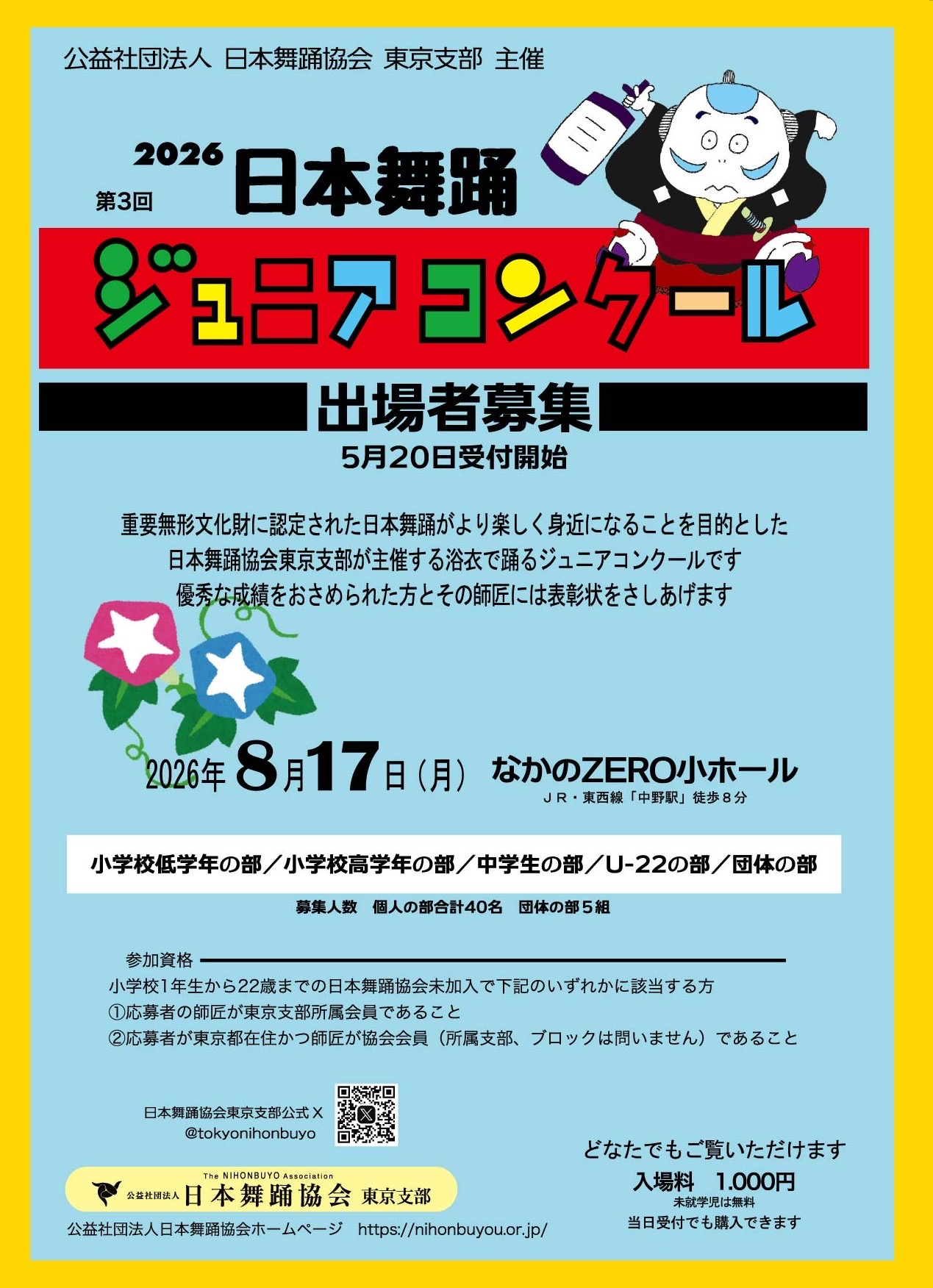 東京支部では今年も22歳以下を対象とした日本舞踊ジュニアコンクールを開催いたします。
